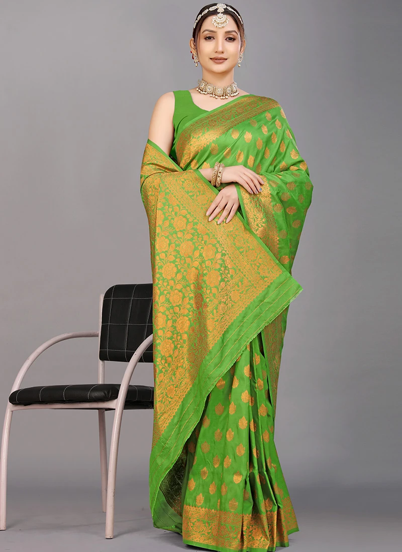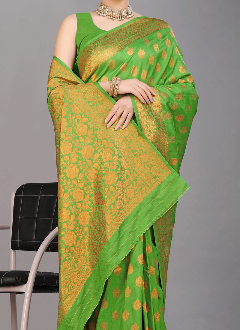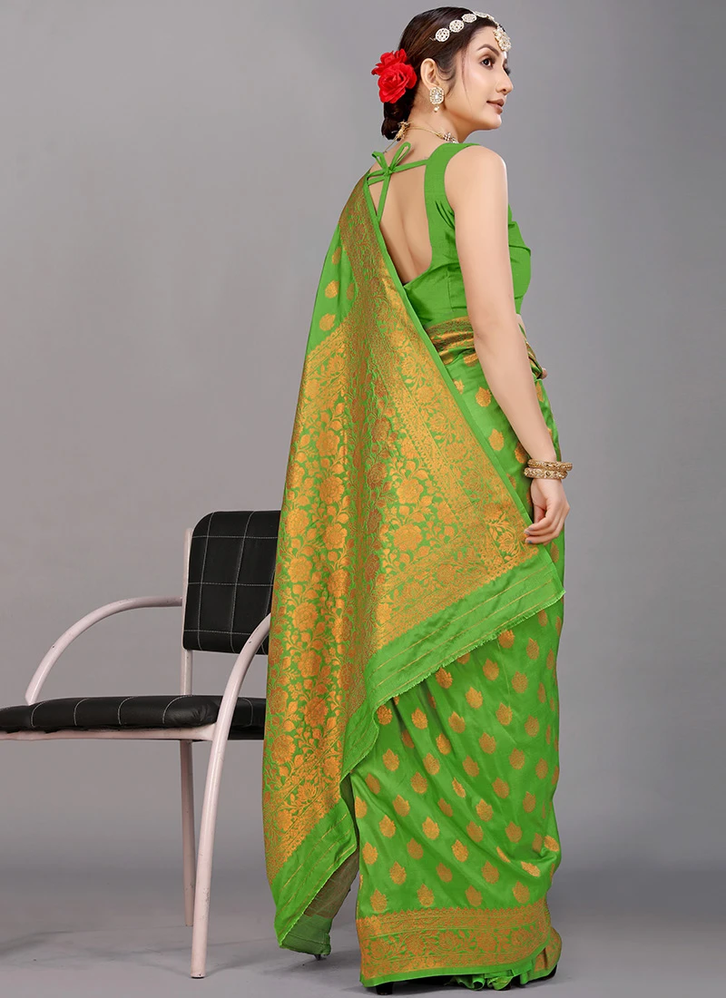 Silk Woven Work Light Green Color Saree Festive Wear