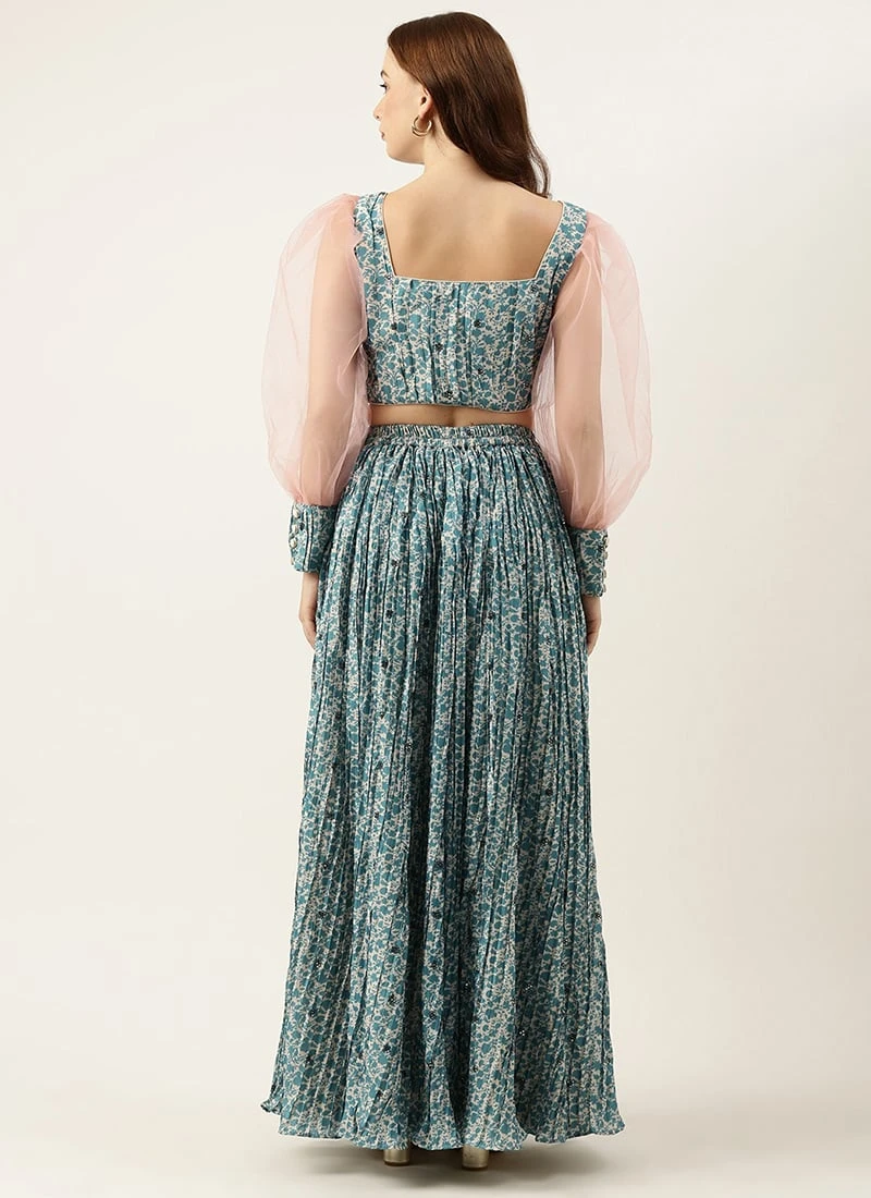 Skirt From Cream N Blue Printed Chinon Skirt Set After Six Wear