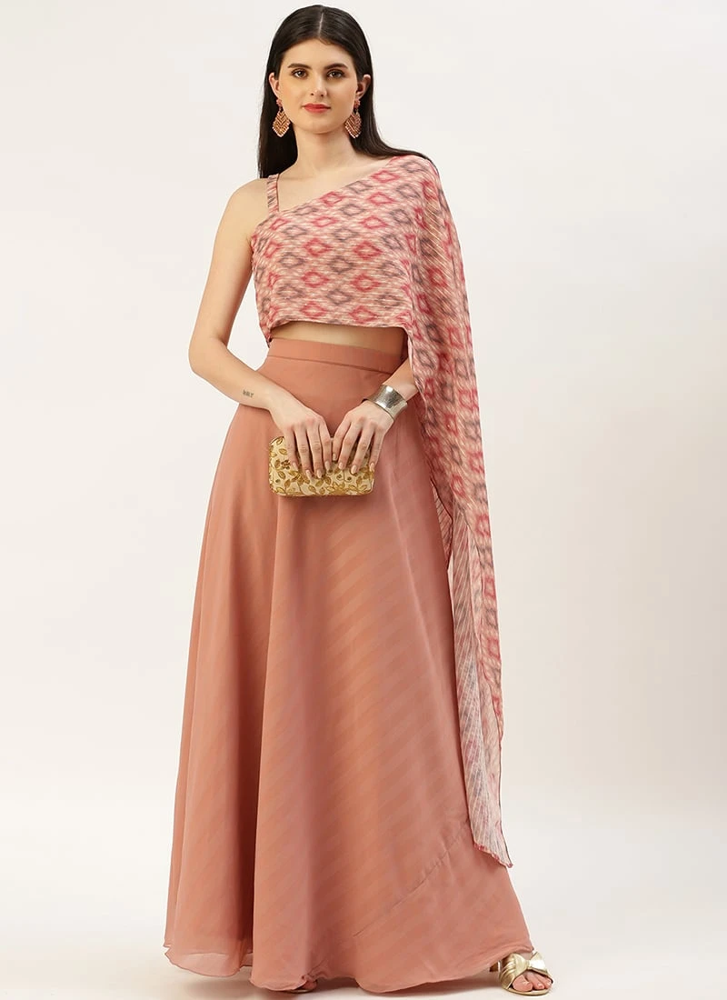 Skirt From Multicolored Digital Printed N Mauve Chiffon Skirt Set After Six Wear