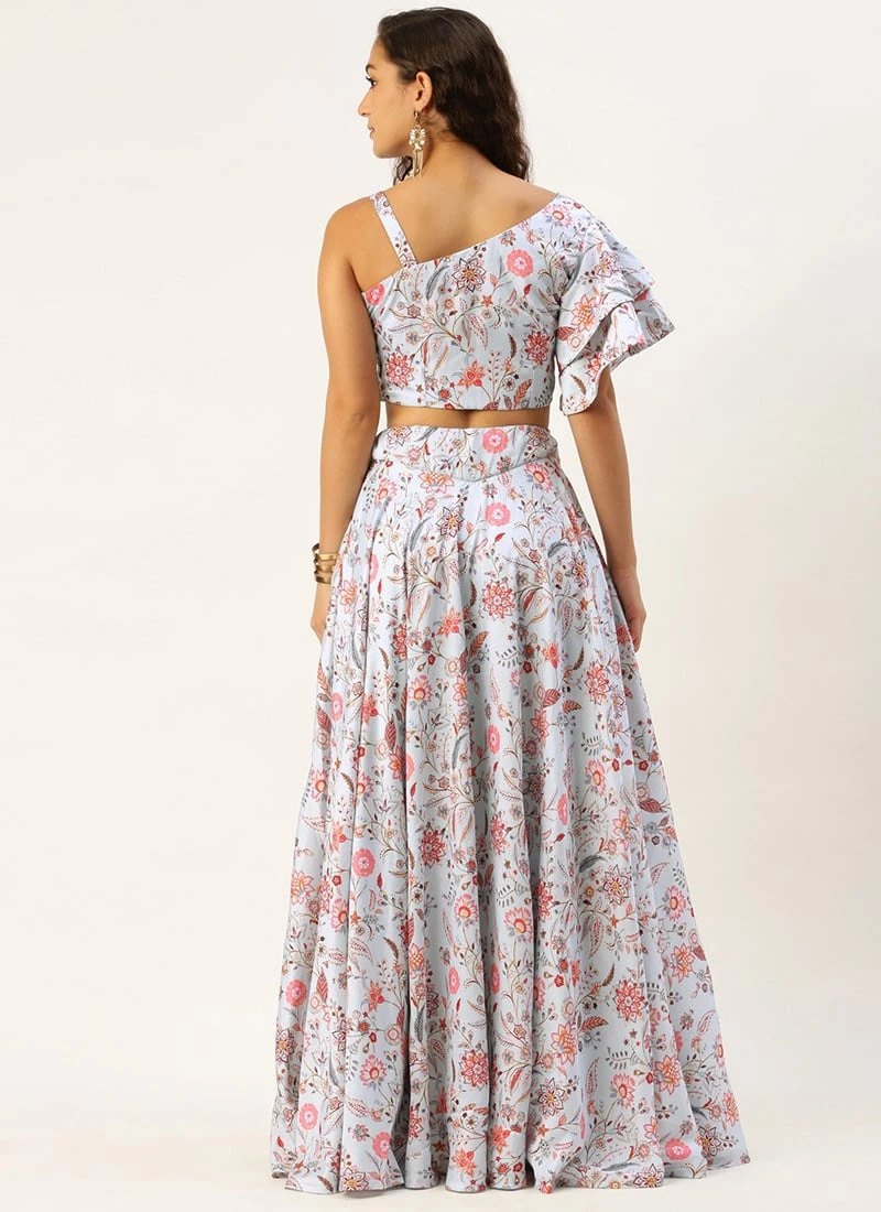 Skirt From Pale Blue Lily Art Silk Printed Skirt Set After Six Wear
