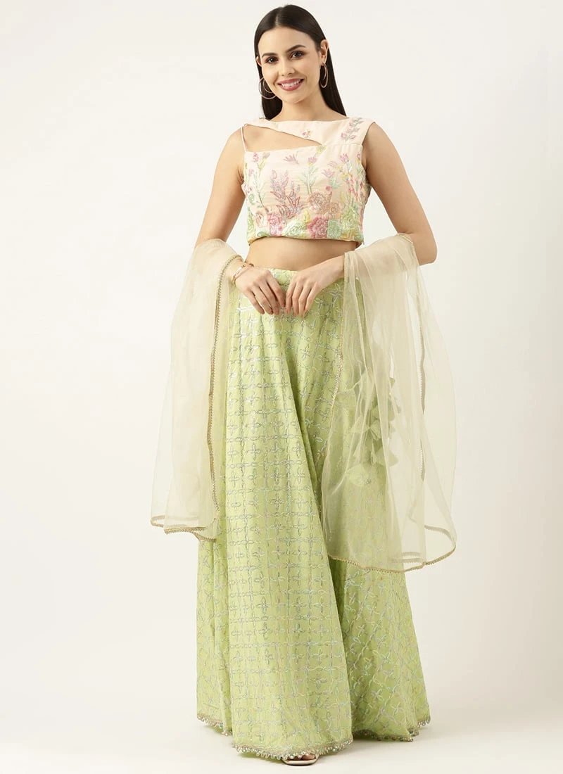 Skirt From Purple N Off White Art Silk Embroidered Lehenga After Six Wear