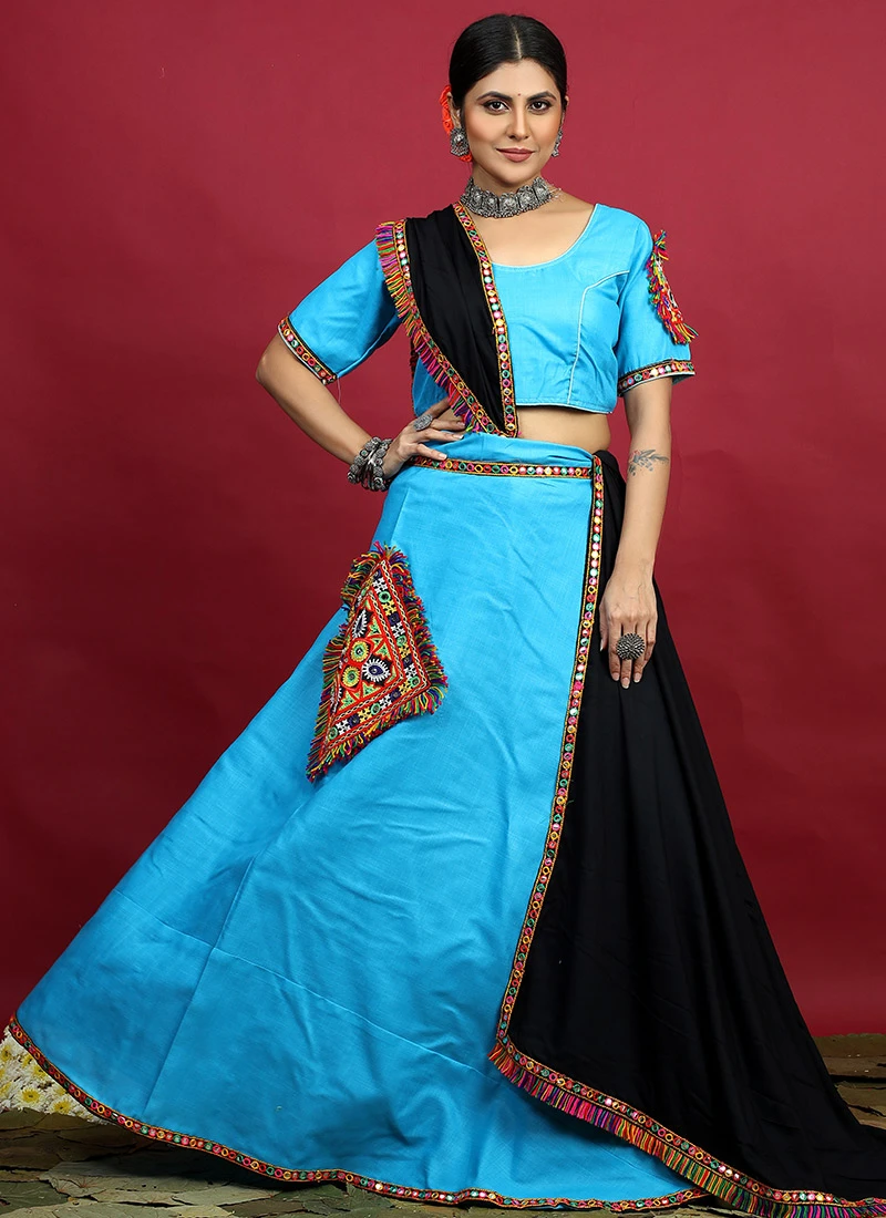 Sky Blue Blended Kutch N Mirror Work Chaniya Choli Festive Wear