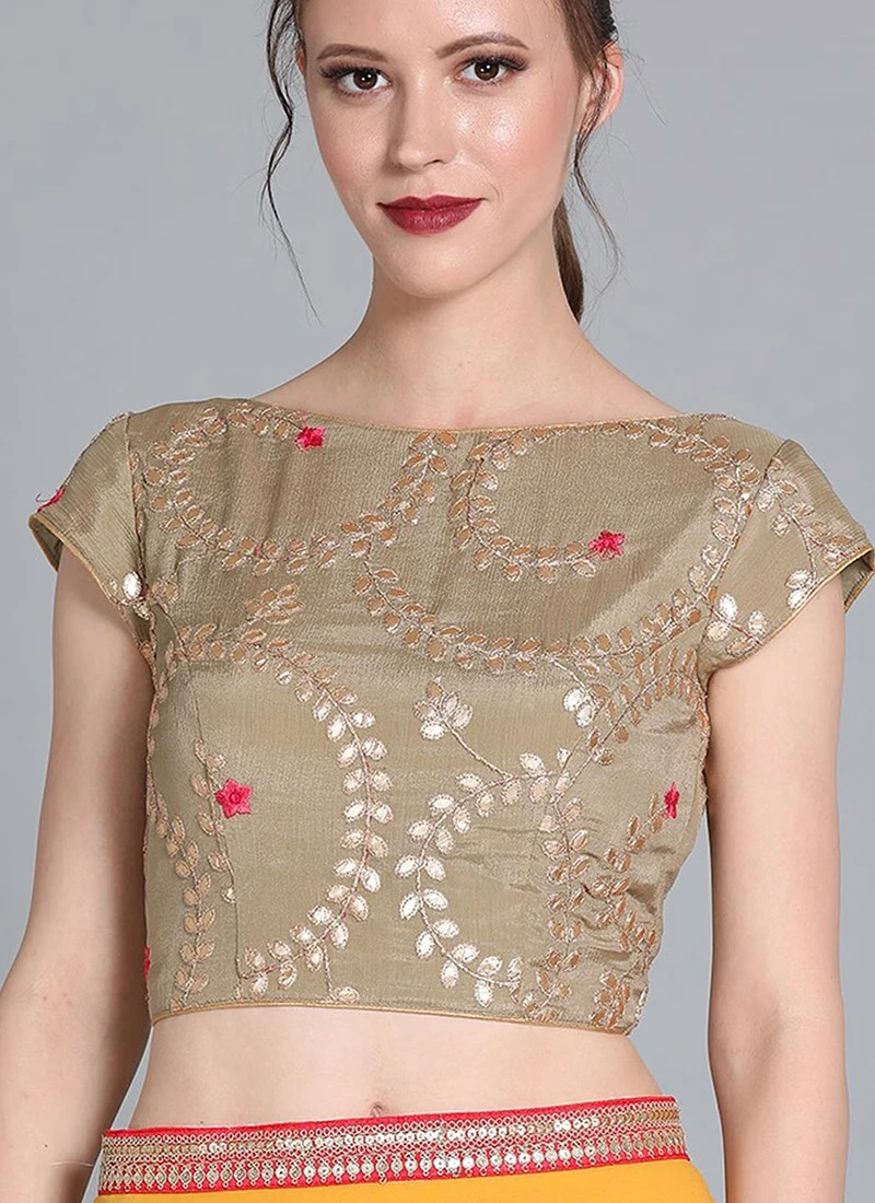 Sprout Green Embroidered Chinon Blouse Festive Wear