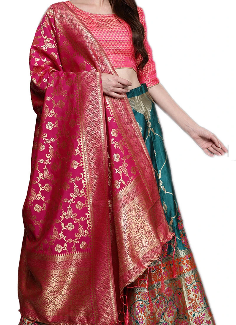 Teal Green Silk Weaving Work A Line Lehenga Festive Wear