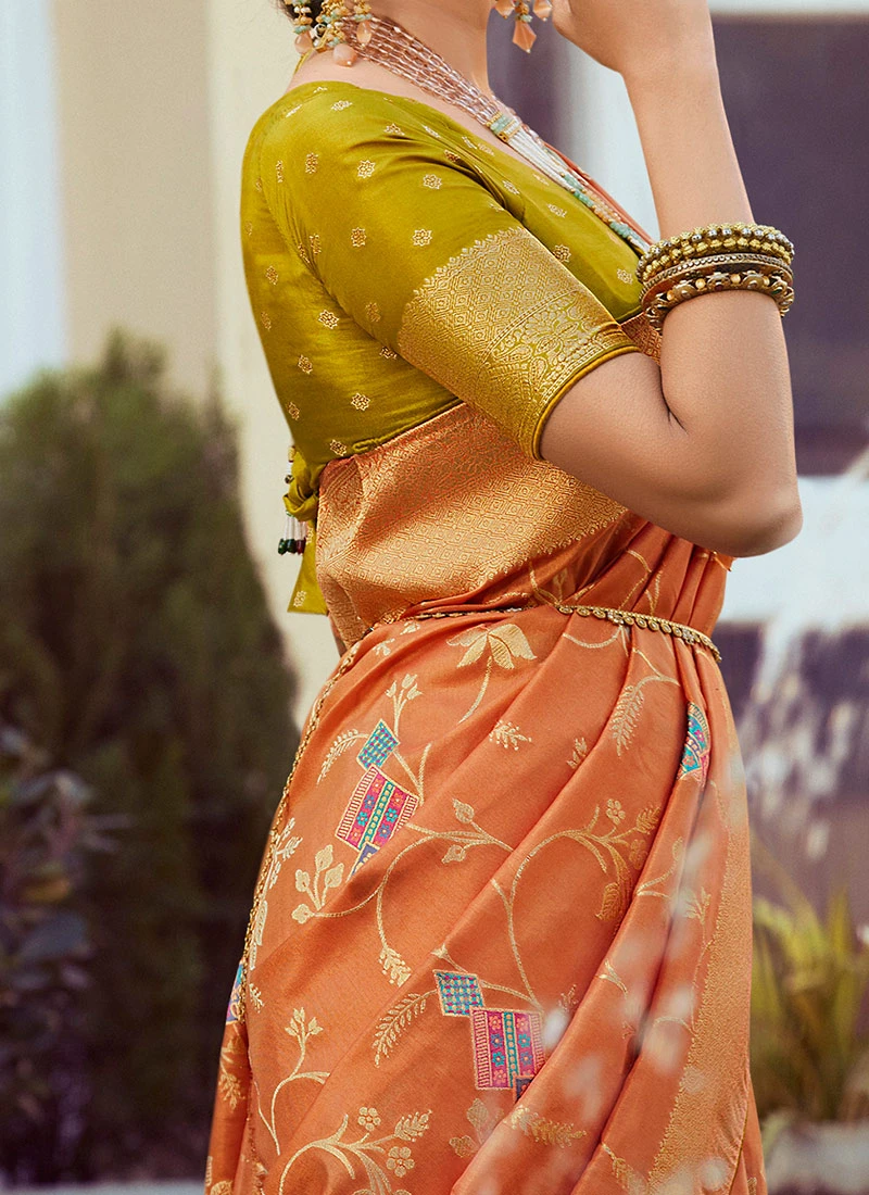 Tissue Meena Orange Color Woven Work Saree Party Wear