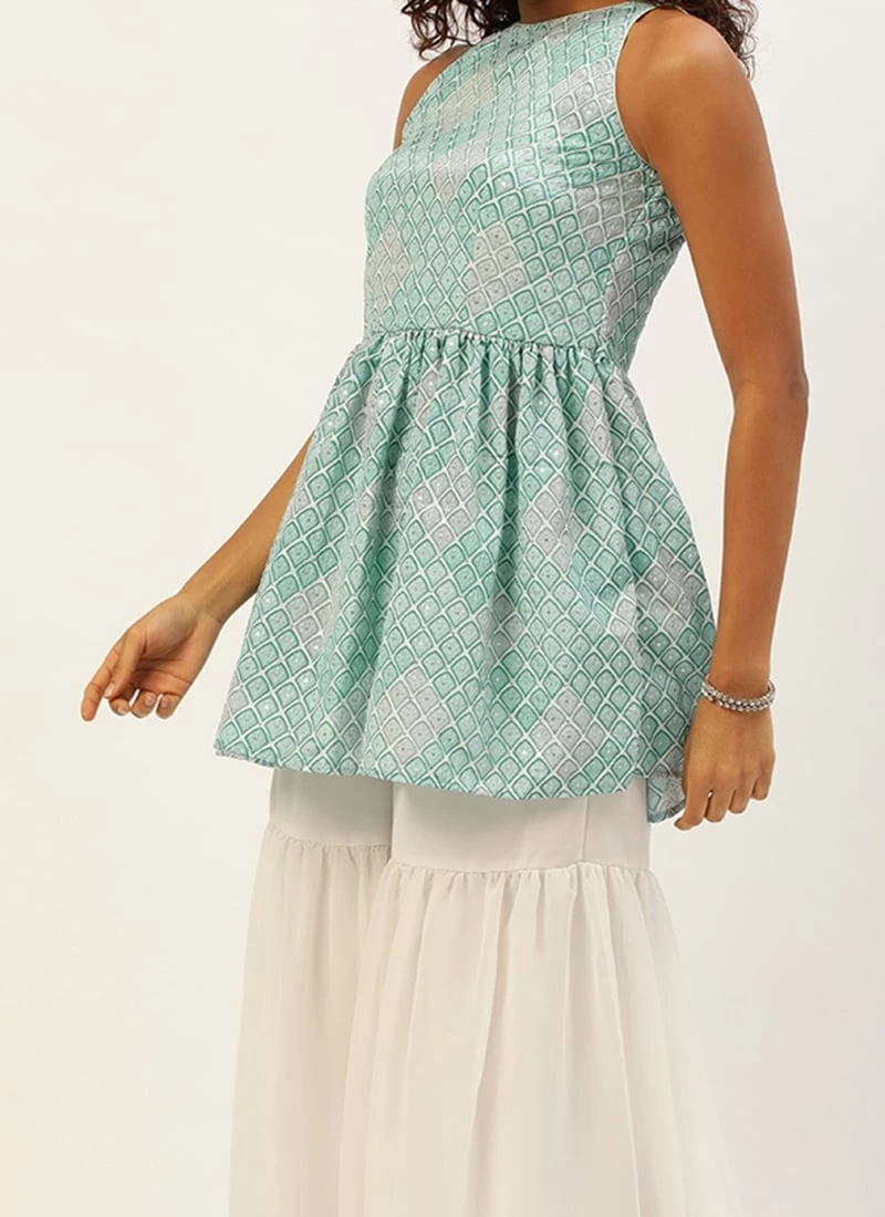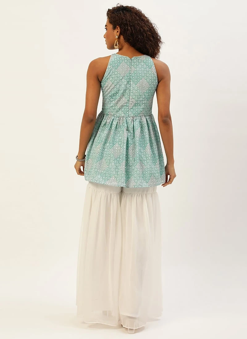 Top From Multicolored Georgette Embroidered Gharara Suit After Six Wear
