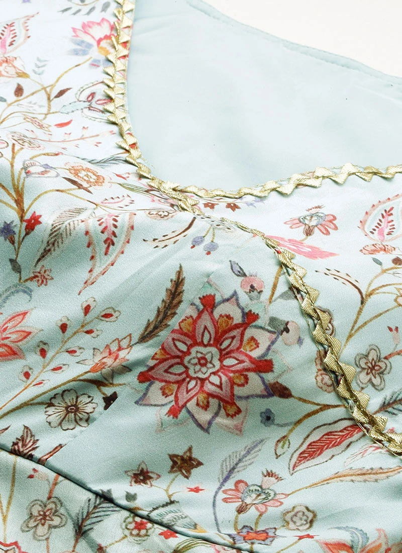 Top From Pale Blue N Mauve Art Silk Anarkali Suit Set After Six Wear