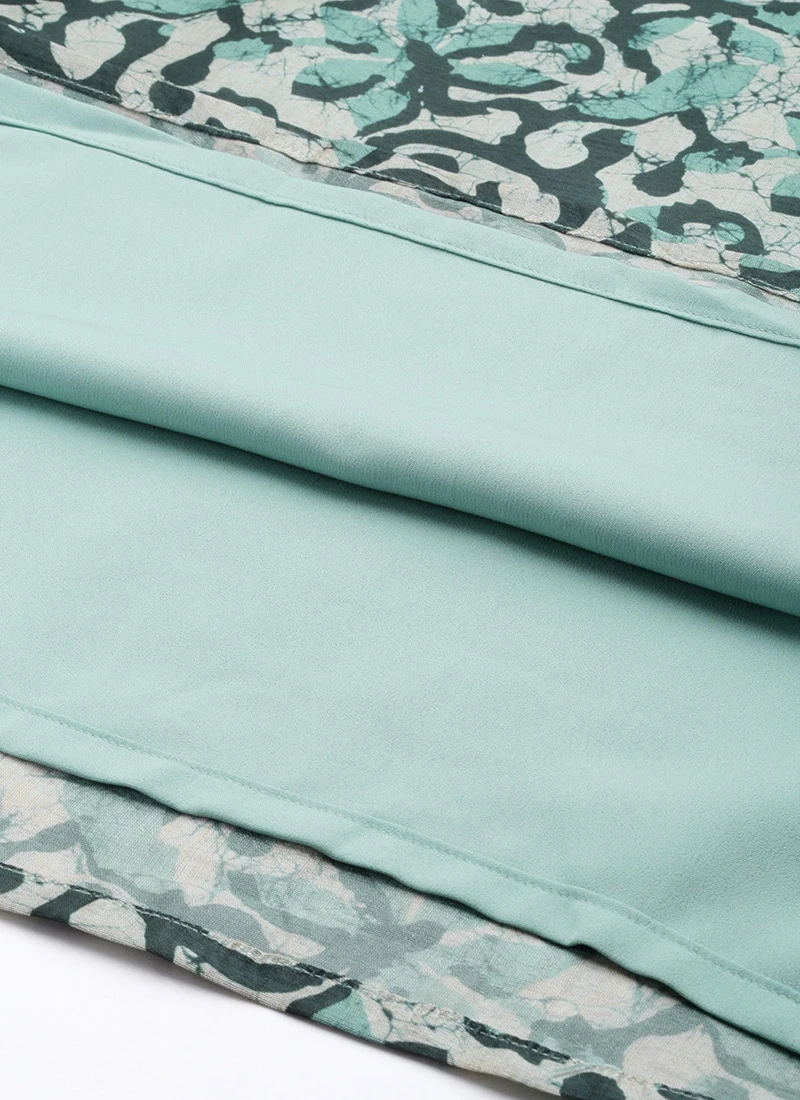 Top From Sage Green Art Silk Digital Printed Top N Pant Suit After Six Wear