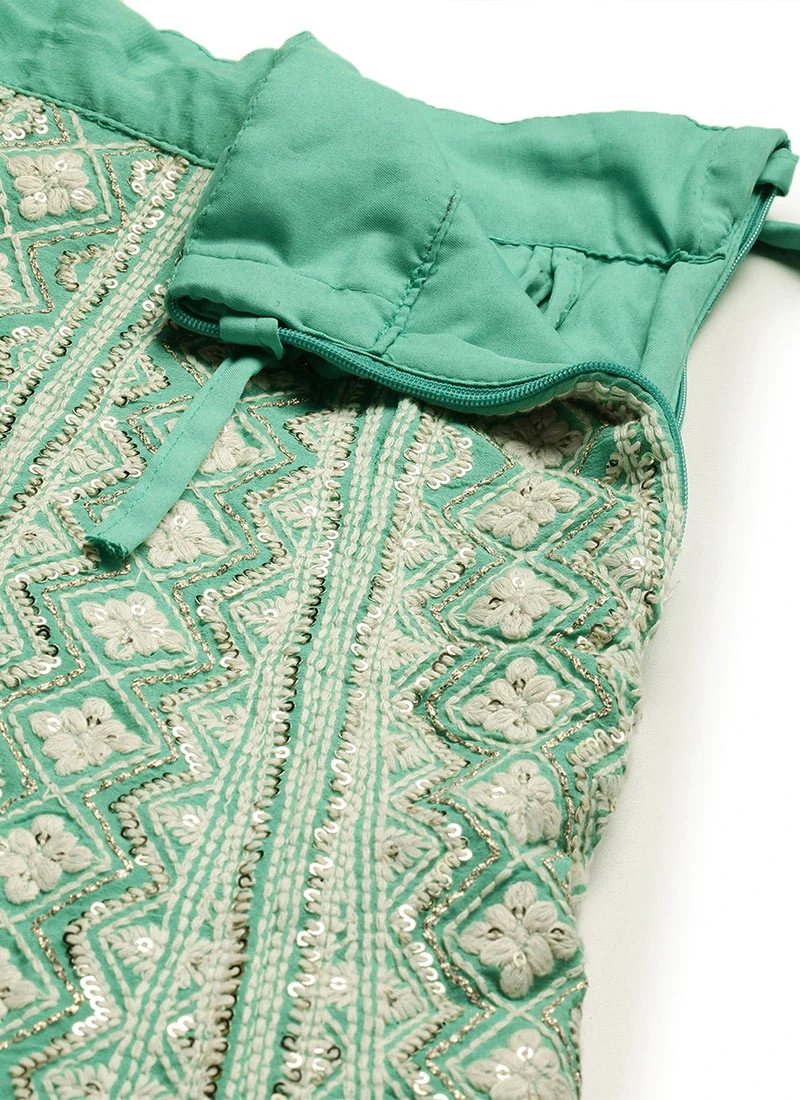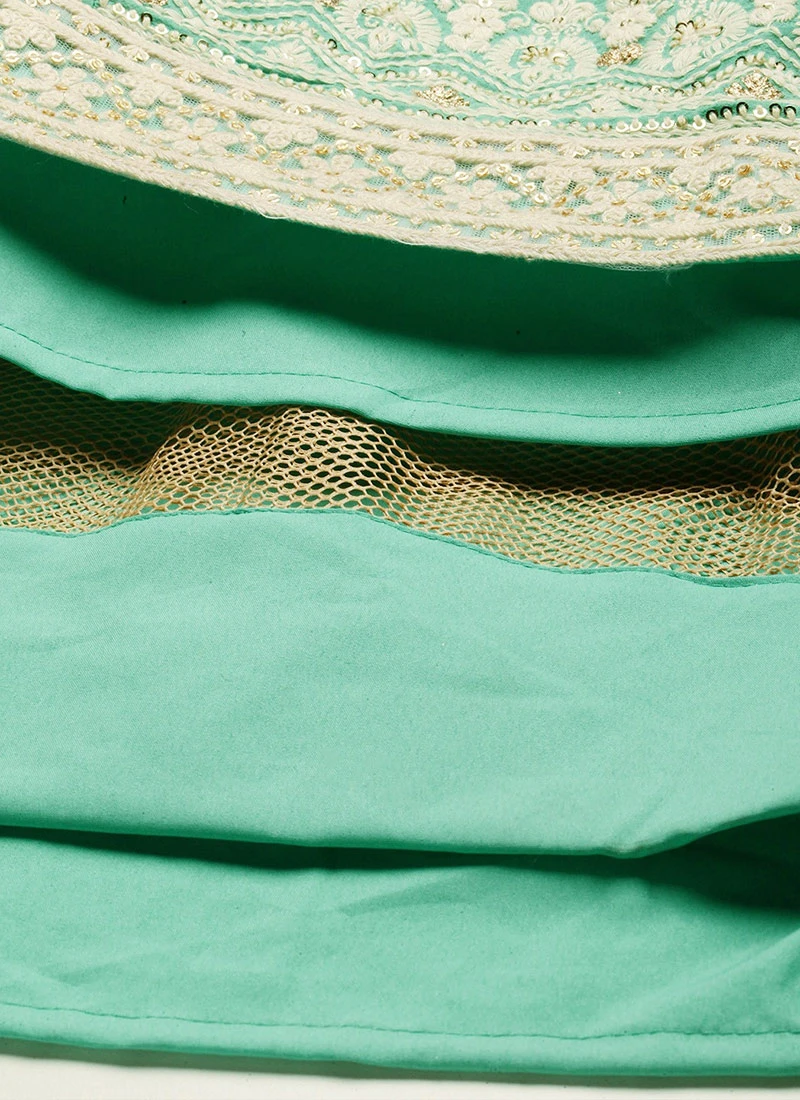 Turquoise N Green Embroidered Kali Lehenga Wedding Wear