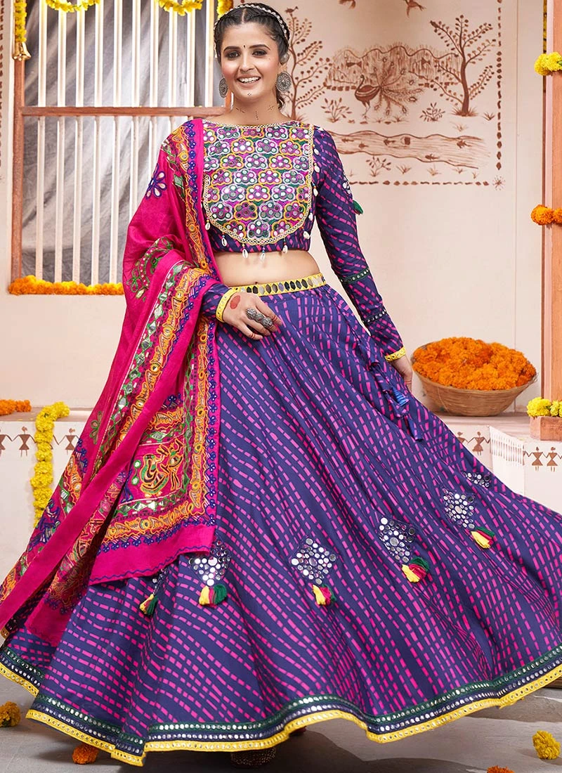 Chaniya Choli also known as Ghagra Choli is a traditional attire originating from the colourful state of Gujarat in India. It consists of three main components the Chaniya flared skirt Choli and a Dupatta . This particular ensemble is crafted from highquality viscose fabric known for its luxurious feel softness and drape. Viscose is a breathable and lightweight material that ensures comfort even during long hours of wear making it ideal for festive occasions.