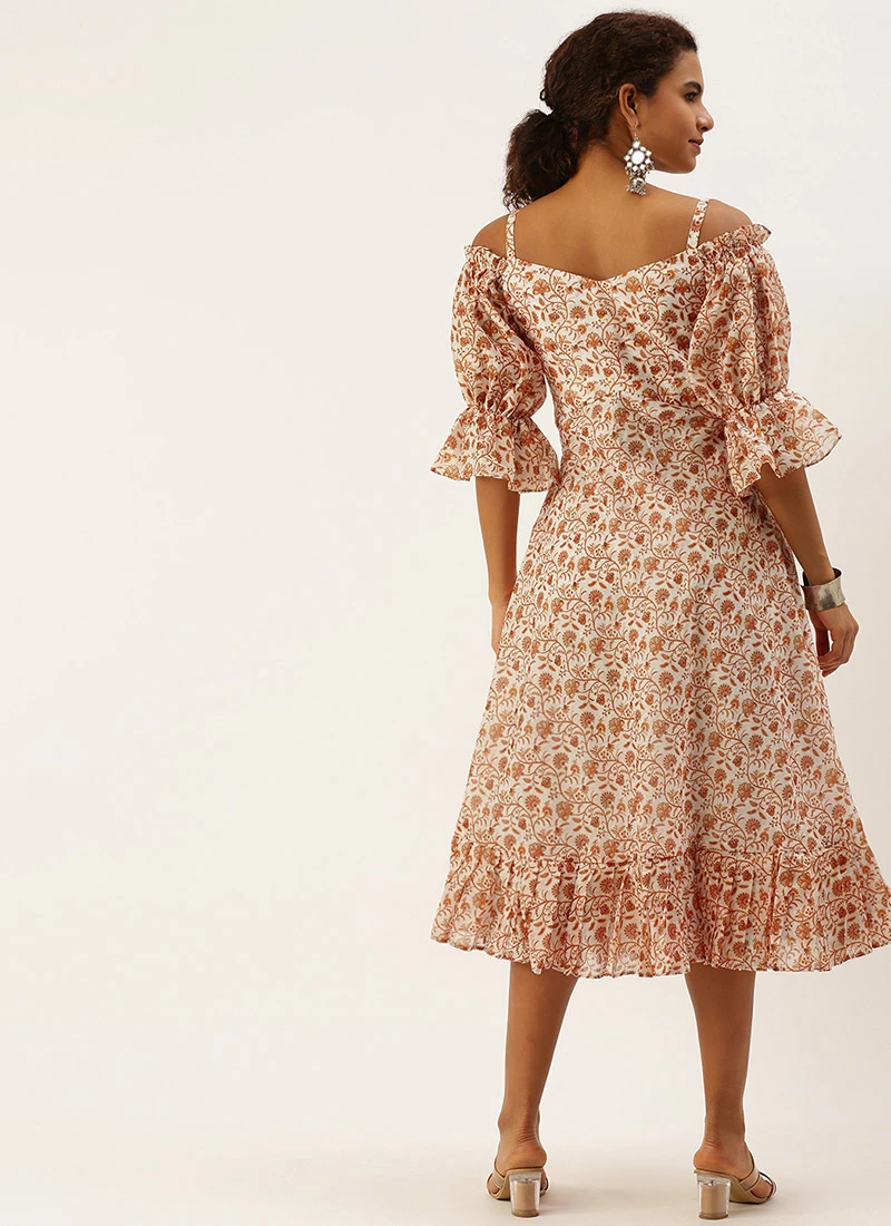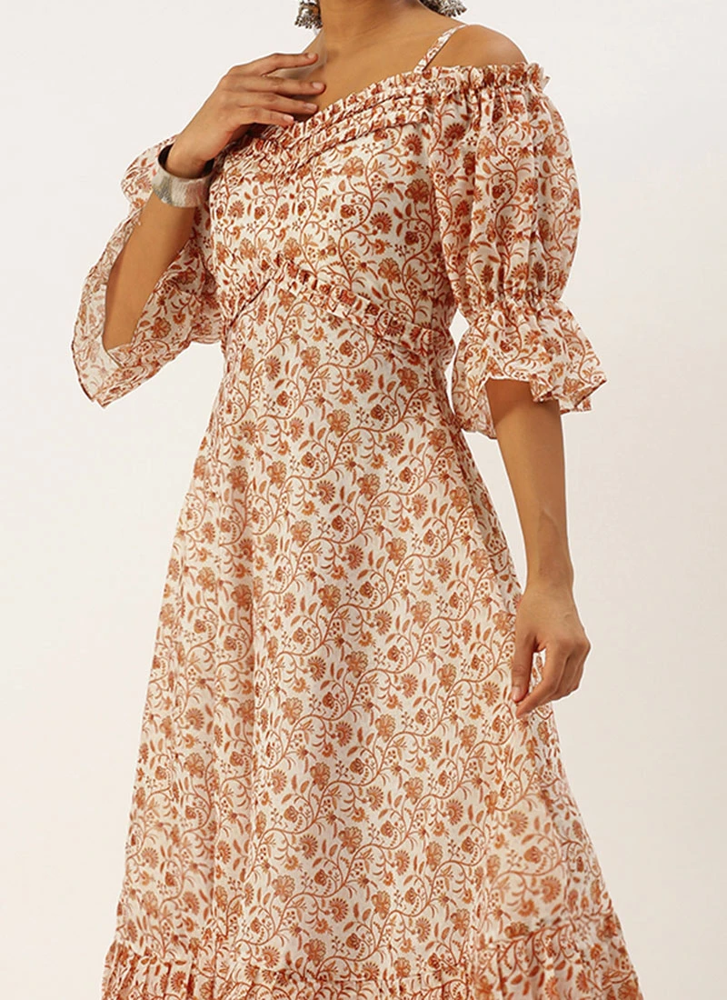 White Art Silk Digital Printed Maxi Dress After Six Wear