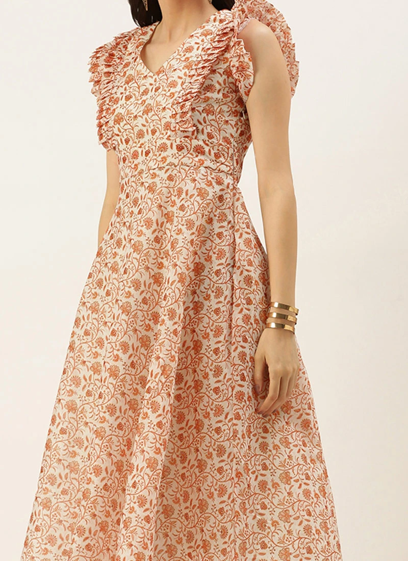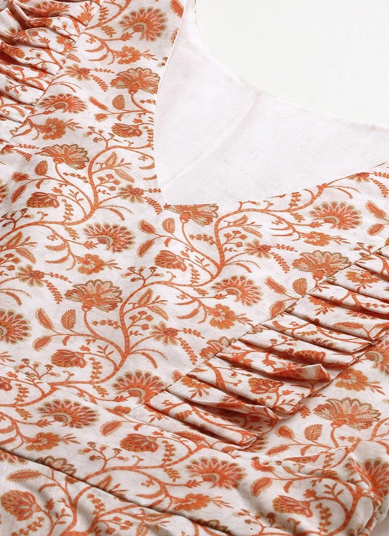 White Art Silk Printed Knife Pleated Style Dress After Six Wear