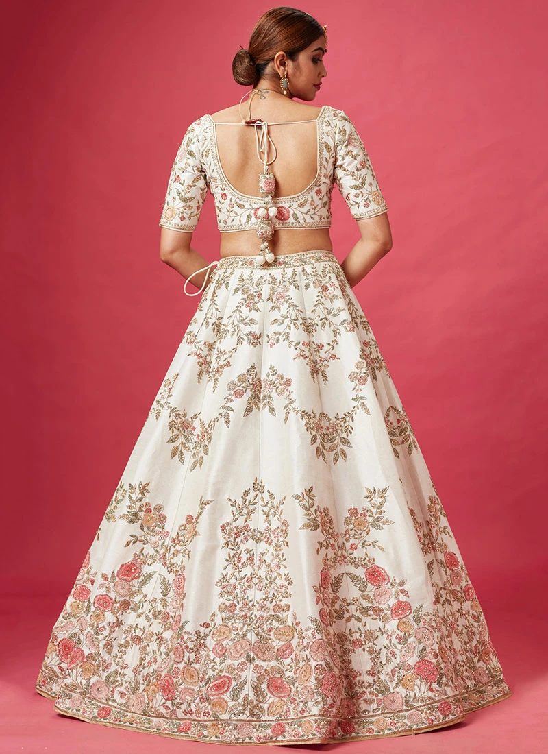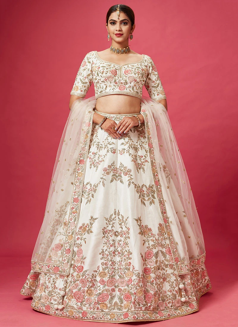 Comes with semi -stitched lehenga, un stitched choli and dupatta fabric. To have it stitched, please select the custom tailoring options. Lehenga with elaborate patterns and colors are used for photo-shoot. Color and pattern of the lehenga might not be as shown in the image.