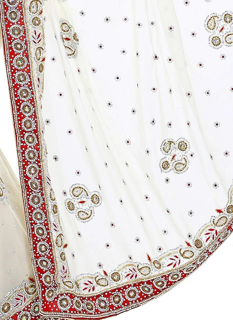 White Georgette Crystals Embellished Saree Party Wear