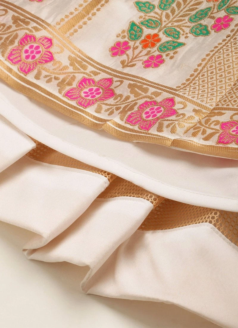 White Jacquard N Hot Pink Georgette Kali Gown Party Wear