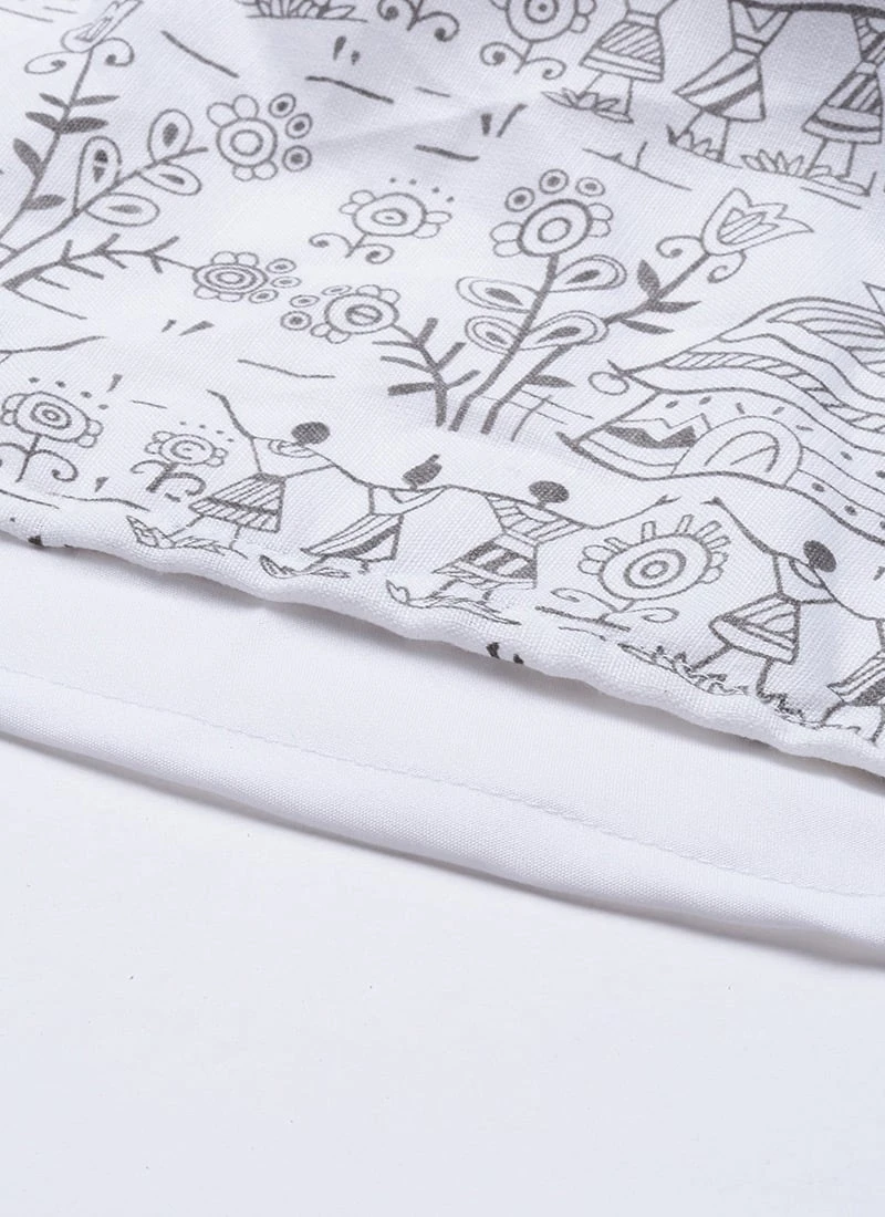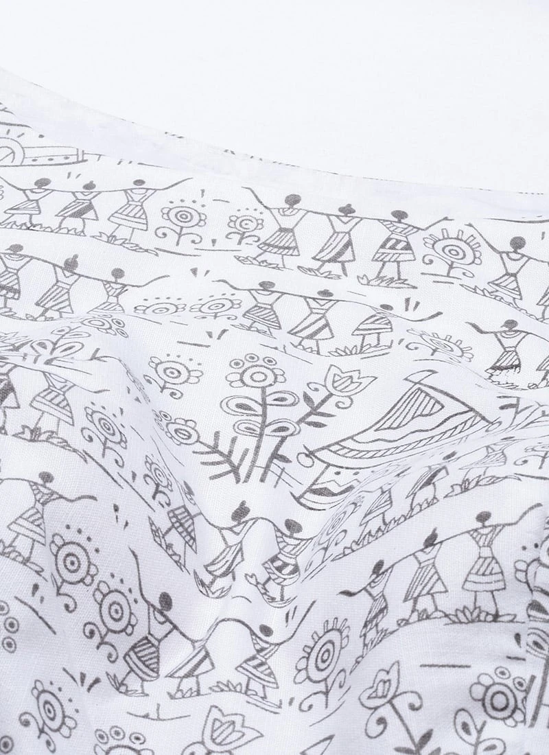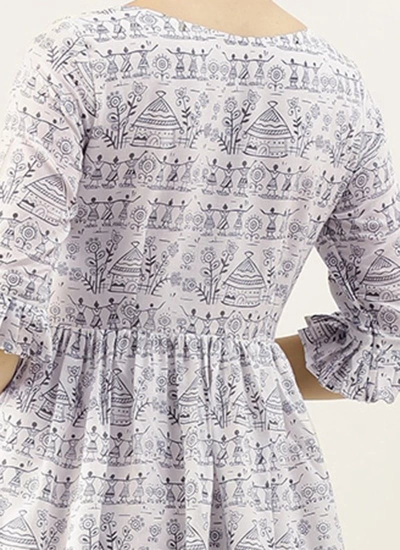 White Rayon Printed Gathered Maxi Dress Festive Wear