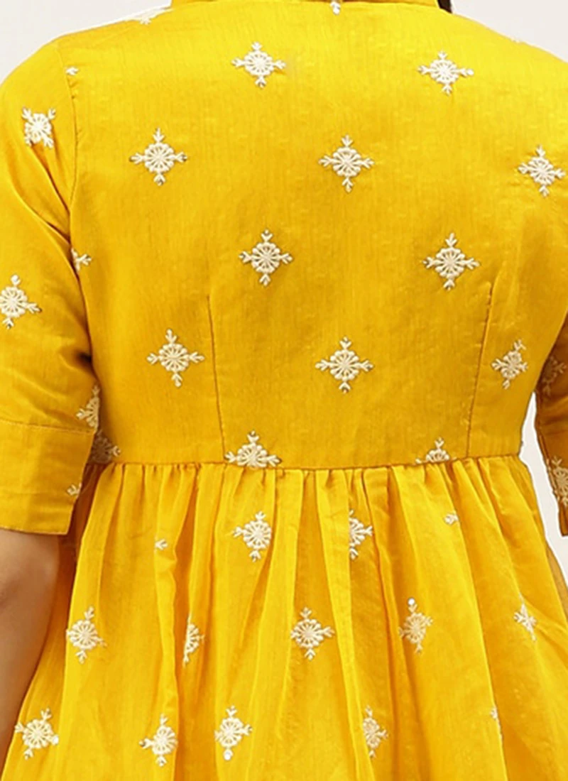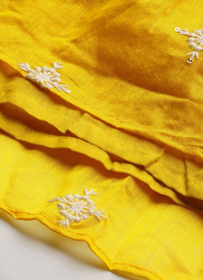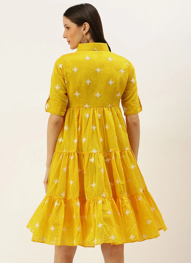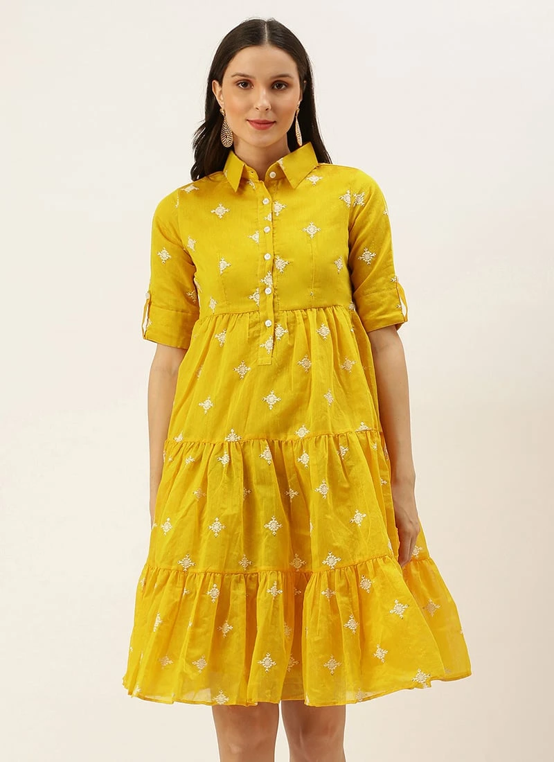 Yellow Chanderi Cotton Tiered Dress Festive Wear