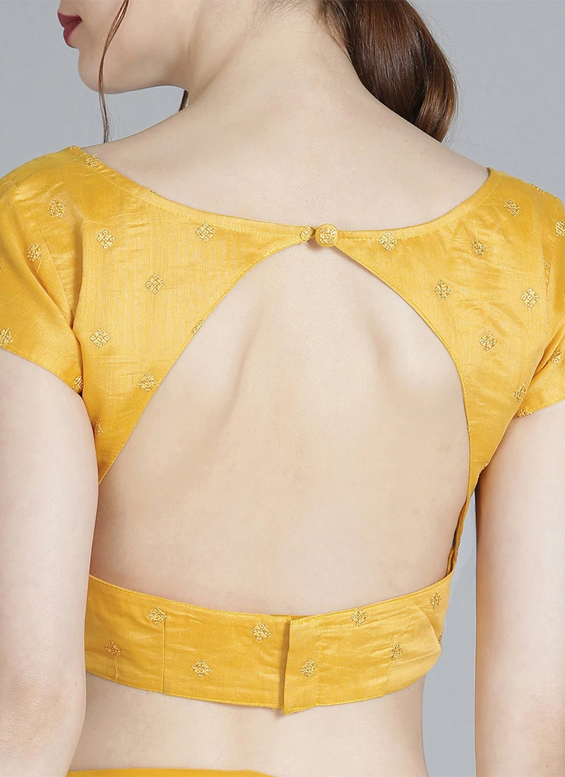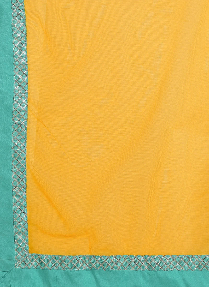 Yellow N Turquoise Contrast Half N Half Saree Festive Wear