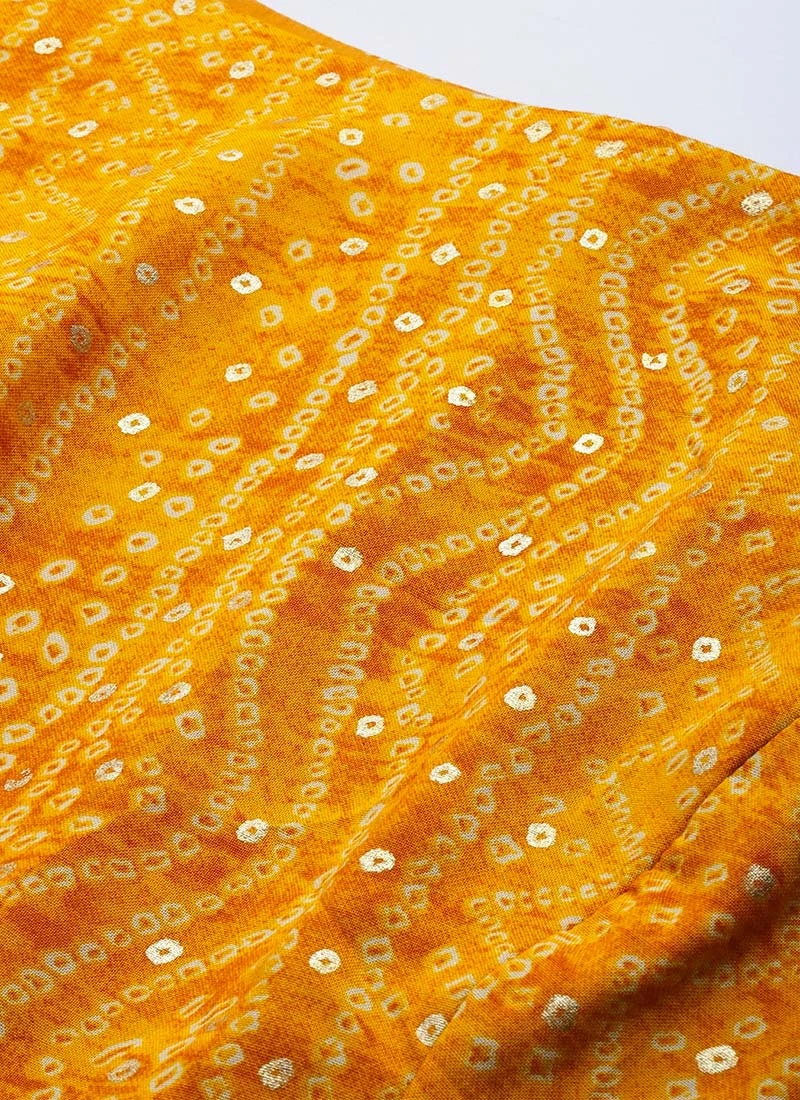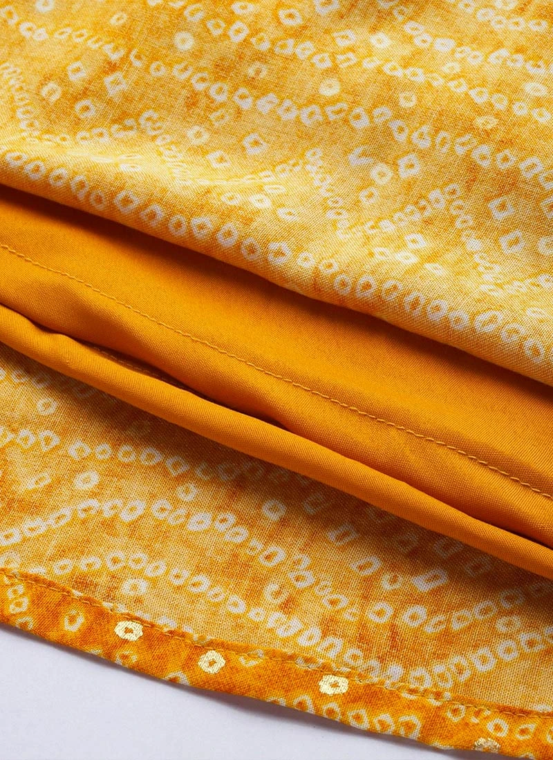 Yellow Printed Viscose Handkerchief Style Dress Festive Wear