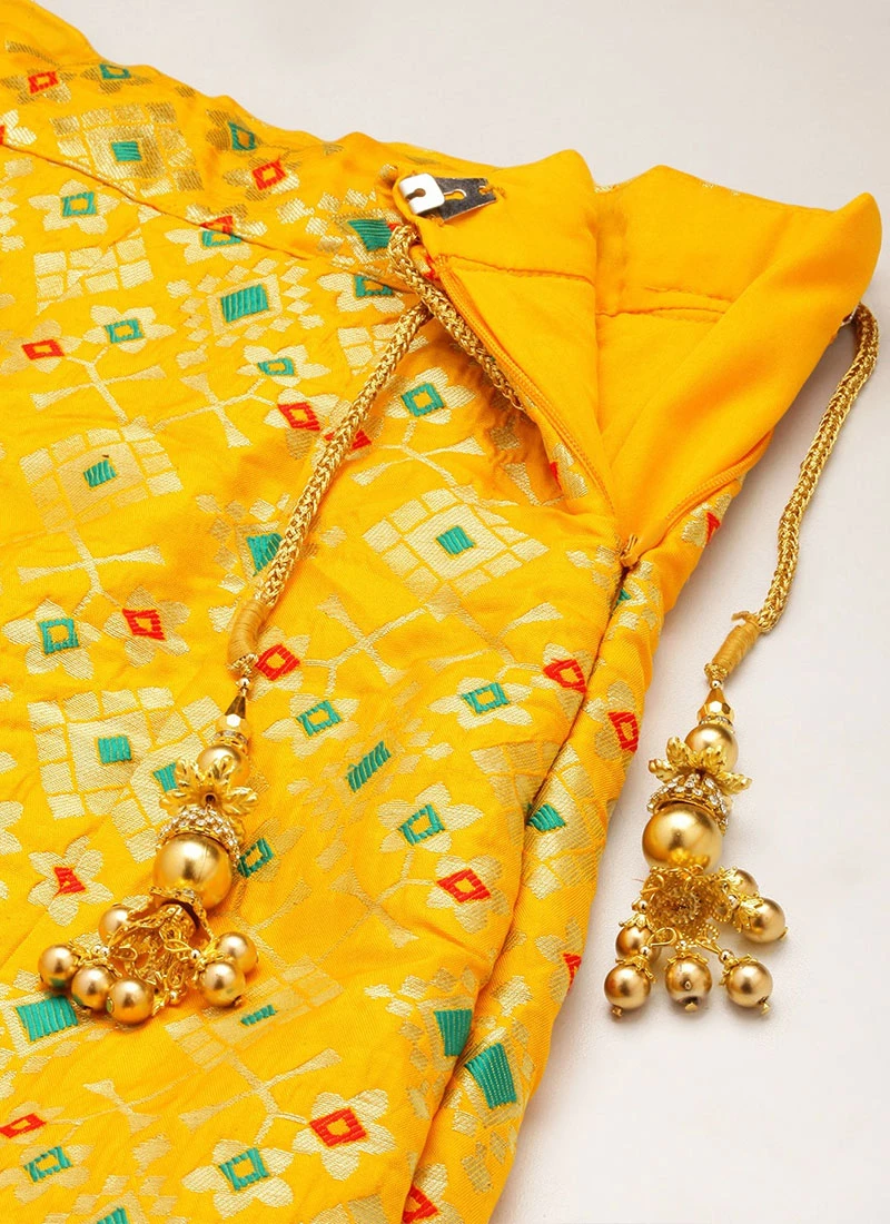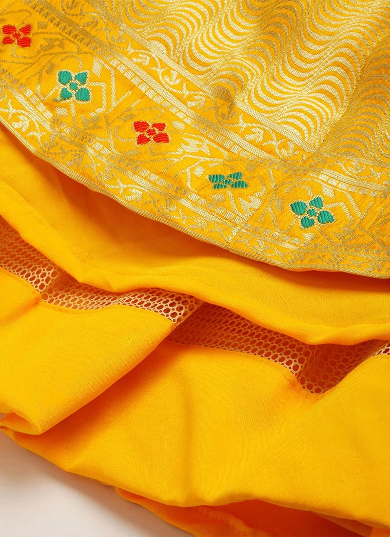 Yellow Taffeta N Green Art Silk Lehenga Festive Wear