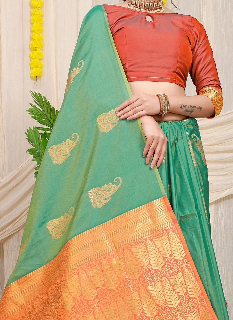 Zari Weaving Work Green Color Soft Patola Silk Saree Party Wear