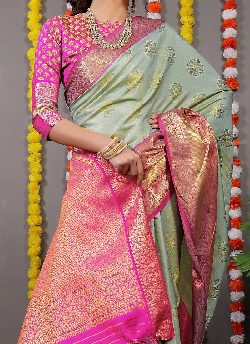 Zari Work Pista Green Color Patola Silk Saree Festive Wear